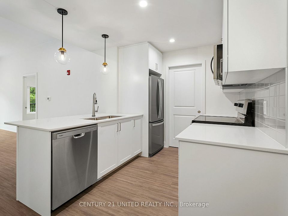 Brand new 2 bedroom 2 bathroom unit in the new Brix building in Historic Creemore. Experience luxury living in the spectacular kitchen featuring brand new stainless steel appliances, quartz countertop, an island breakfast bar & ceramic tiled backsplash. The open concept layout offers high quality laminate floors & plenty of natural light coming from the oversized windows. Enjoy your morning coffee on the covered balcony overlooking a mature tree line & greenery. The convenient in-unit stackable laundry & storage space is ideal. The building features a party/meeting room, gym, lobby with gas fireplace & outdoor greenspace. Underground parking & locker included. Minutes away from Creemore Brewery, restaurants, shopping & Creemore Rec Centre. Golf nearby & 20 minutes to Devils Glen Ski Hill & Country Club. 35 Minutes away from Blue Mountain Village.