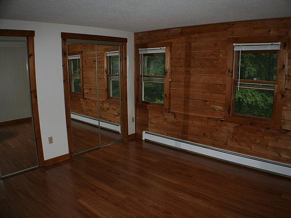 For rent is a side by side log home duplex. It has 2 bedrooms, with wood floors and ample closet space. One full bathroom and a large great room with cathedral ceilings. Out back there is a patio. There is a washer and dryer hookup with additional storage on the walkout level. There is about 3-4 parking spaces and one garage bay with automatic opener. The heat is oil and to be paid by the tenant. The property is set back from the road. Lease terms are flexible so let me know what you need. Yard maintenance, and snow removal is included. Pets are negotiable. -Thank you, Flexible lease terms.
