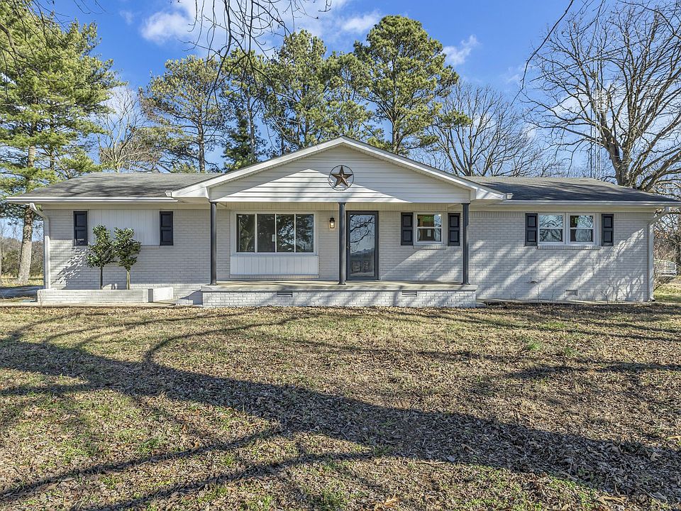 This home has been fully refurbished and is ready for a new owner. This three bedroom two and half bathroom brick home is located in the beautiful Belvidere community and features a large eat in kitchen, dining room, utility room, master bedroom suite, paved driveway, mature shade trees and covered carport to keep you out of the weather! Renovations include new windows, new shutters, new HVAC, LED interior and exterior lighting, freshly painted brick and new board and batten siding, all new sheetrock and ascent tongue and groove wood walls, new plumbing through ought, custom cabinets, granite counter tops, fully updated bathrooms and more! This house is located less than 15 minutes to the Square in Winchester and only 45 minutes to Huntsville, AL.