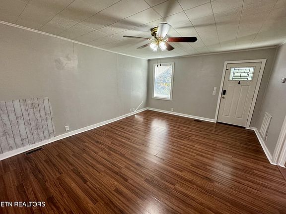 MOVE IN READY!! Cute little rancher with many upgrades including metal roof, windows, HVAC, water heater, concrete drive, renovated bath, gutters, laminate flooring, fresh paint inside and out. If you need a home and looking for affordability with low maintenance, look no further. 2 storage buildings will convey. Range and Refrigerator conveys. Covered front porch overlooking nice level lawn.