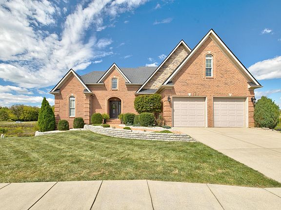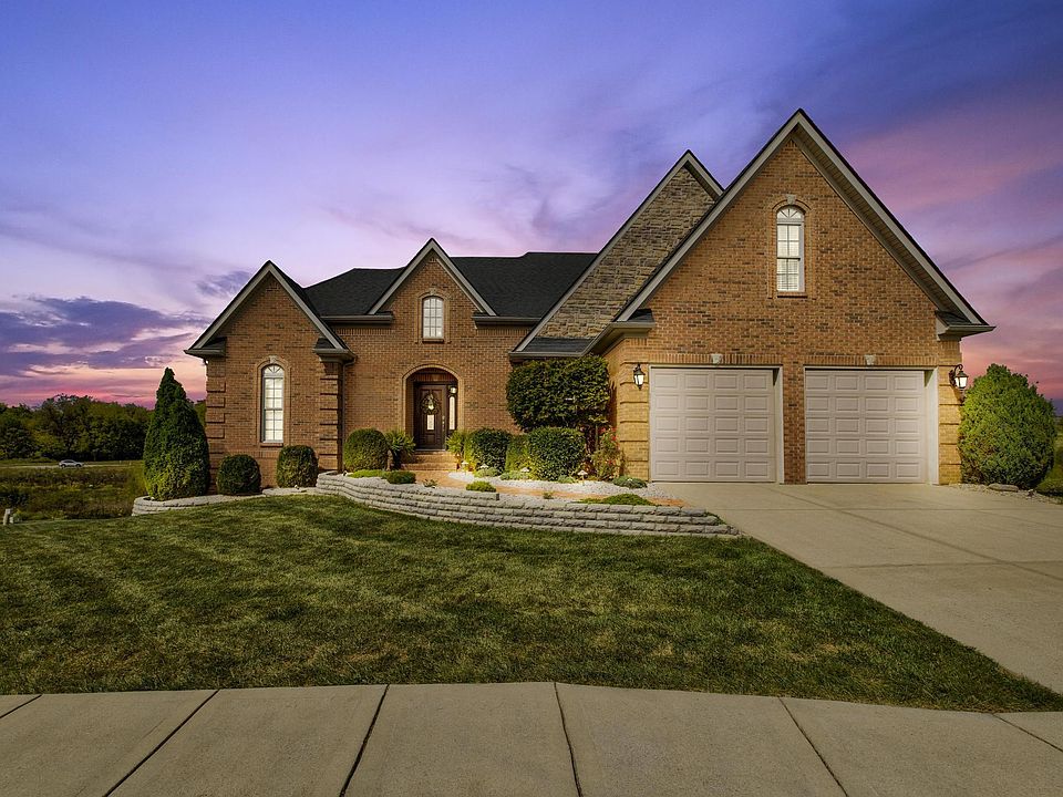 WOW!!! Impressive brick 5 bedroom/3 full bath/1 half bath home on full walkout basement in Barkley Meadows. The wait is over! The second you walk through the front door the quality workmanship shines throughout. First floor primary bedroom boasts gorgeous trey ceilings and attached bathroom. Spacious open floor plan with foyer, two story great room, large kitchen with island and seating, dining area, stone fireplace, and custom built-ins with upgraded lighting. Kitchen is equipped with upgraded cabinets, stainless steel appliances, and granite countertops. Gleaming hardwoods throughout including the staircase which leads you upstairs to an additional spacious three bedrooms and full bathroom with double vanity. The basement has a finished 5th bedroom and full bathroom. An additional 1161 square feet of basement is in the process of being finished. Once completed will give you a total finished square foot of approx 3997 sq feet of living space! Home offers tons of storage, including basement auxiliary room for lawn equipment. Check out the amazing views from sprawling deck or enjoy some shade on lower level concrete patio. Entertainer's dream!