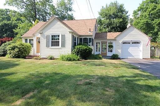 Charm & character abound in this beautifully updated Cape in well sought after neighborhood! Pristine condition throughout. Enter through mudroom w/stunning glass doors into completely remodeled custom kitchen that boast stunning granite and stainless steel appliances. Kitchen flows into Dining Room with two custom built-in cabinets. You will fall in love with the Living Room that has the "they don't build them like this anymore" fireplace molding, built-in book shelves and cabinets, crown molding, chair rail and wainscoting. Sun-filled Family room with opening to the Kitchen and slider to the expansive Deck. Bedroom downstairs for company or first floor Master. Stylish tiled Full Bathroom complete the first floor. Ascend the hardwood stairs to remodeled Full Bathroom and two Bedrooms. Finished Downstairs is the perfect "Man Town". Large private yard. NEWER roof, NEWER windows, NEW furnace, GAS HEAT, Town Water, Town Sewer & much more! Welcome Home!