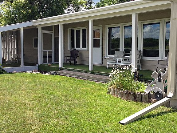 River Views from floor to ceiling windows in living room, open to dining room with 3 sided fireplace. Master bed has views and attached 1/2 bath. 2 additional beds and updated bathroom on main level. Expansive kitchen with eat in area and tons of storage! Lower level has family room, sauna, 4th bedroom, 3/4 bath and HUGE storage/utility room with stairs to exterior. Attached heated garage with shed, detached shed and a large screened porch to enjoy Summer nights. New roof, siding + windows. New fully remodeled kitchen in 2019, Solid cherry cabinets with hickory style laminate plank flooring in formal dining area into kitchen and entryway and extends down the hall to bedrooms. 3 upper level bedrooms have original oak hardwood flooring.