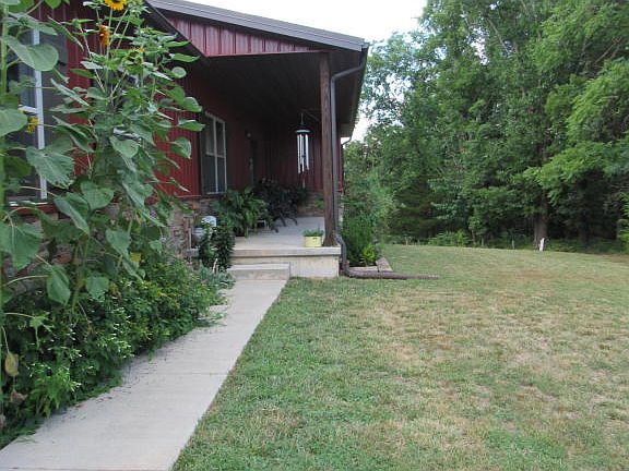 Private gorgeous treed setting, just off black top road, less than 5 minutes to I-44, 3,624 Sq. Ft. quality built, maintenance free, walk-out basement on 5 Acres. Long covered front porch leads into large foyer & very inviting open floor plan, huge living/dining/kitchen area that features gas log FP, wood floors, 9'ceilings, exposed beams, granite counter tops, large pantry & gorgeous view from the wrap-around deck. Master bedroom features double closets, huge master bath w/whirlpool tub & walk-in shower. Abundance of storage & closet space. Basement features family room, 3 bedrooms, setting area, full bath with granite counter top, & maintenance room. No short cuts here, solid wood doors & trim, high efficiency built home with electric heat pump, 6'' walls, rustic trim and lighting.