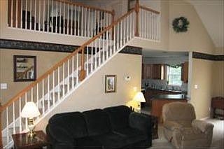 Great open floor plan with vaulted living room/dining room, stone fireplace, 1st floor MBR w/walk-in closet & private bath, spacious kitchen w/breakfast bar, 2BRs on 2nd flr & large open loft for office/den that overlooks great room. Plus family room in finished daylight walk-out basement. New deck overlooks peaceful woods/stream view. Nice friendly neighborhood w/sidewalks & street lights!