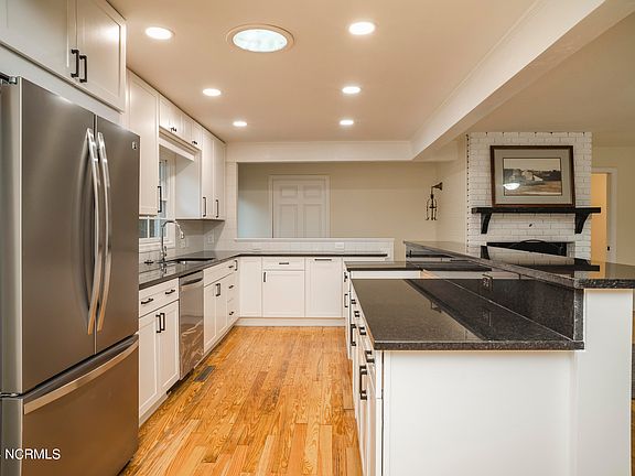 This beautifully modified brick ranch sits on a double lot in the quiet Montpelier Acres neighborhood. This attractive single level home features a brand new kitchen with stainless appliances, solid surface countertops, gleaming refinished floors, fresh paint, and cozy fireplaces! Enter the front door to an open and airy great room with plenty of space to accommodate multiple living and dining areas. With 4 bedrooms, 2 full, and 2 half baths, the floor plan offers flexibility for entertaining or creating cozy nooks. A dedicated office or artists studio has lovely light - a wonderful space to be productive! An enormous master suite is tucked away, and features a fireplace, huge walk in closet, private patio and space for your own private sitting area! The backyard is a private oasis, complete with a tranquil fountain, charming pergolas, mature trees - and a view of the natural canal from the porch! The double detached garage adds convenience for storage and recreational gear - or as a workshop for the hobbyist! This house truly feels like a home, offering a lifestyle filled with weekend Albemarle Sound adventures at the neighborhood beach and grilling out under the stars in your awesome backyard! Don't miss this opportunity!