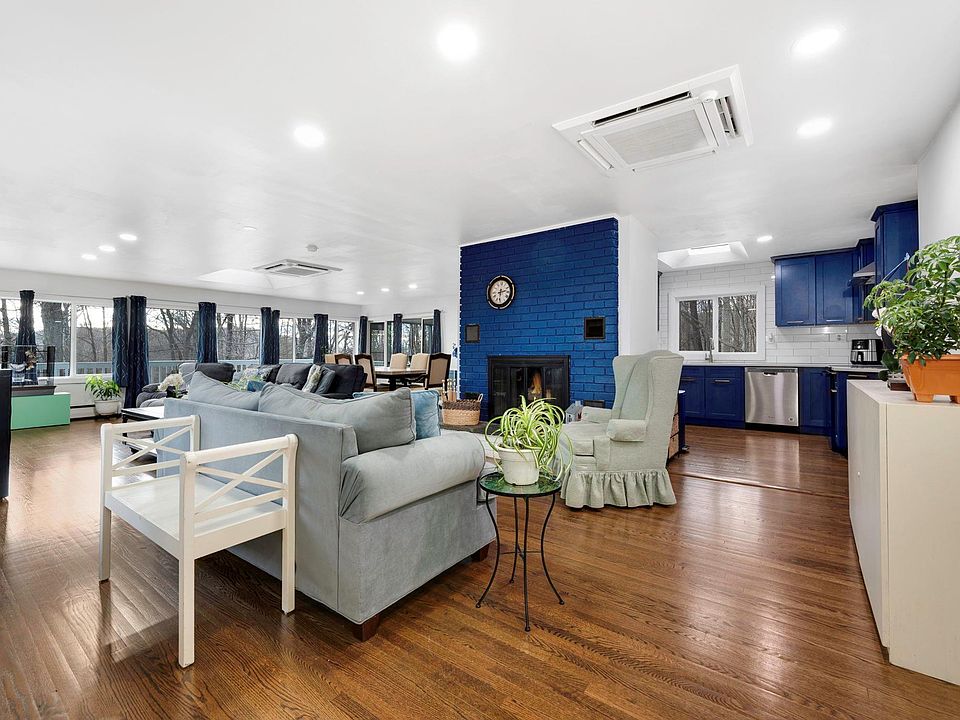 Welcome to this beautifully renovated ranch-style home, set on a sprawling and private acre of flat, lush land. With over 2,500 square feet of thoughtfully designed living space, this home offers comfort, convenience, and modern upgrades throughout. Perfect for commuters, it is located minutes away from the Taconic State Parkway within the highly sought-after Yorktown School District. The updated kitchen is a chef’s delight, featuring stunning maintenance-free granite countertops and brand-new appliances. The crown jewel of the home is the living room which is bathed in natural light, with the expansive windows framing the serene view. As you move through the main level you'll find three generously sized bedrooms including the primary suite. All three bathrooms in the home have been tastefully renovated. The lower level is equally impressive, offering family/playroom, 4th bedroom and/or office space, full bath, laundry room, large storage room and gym. Energy efficiency meets modern living with ductless climate control units in every room, ensuring cost-effective heating and cooling. The home is fully powered by solar energy, making it both eco-friendly and budget-conscious. Additional highlights include a generously sized two-car garage with ample storage space, a new roof, and a screened-in sunroom that overlooks a meticulously maintained property in pristine condition. This is a truly exceptional home that you don’t want to miss!