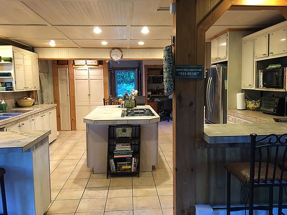 FOR SALE BY OWNER, PLEASE CALL OWNER FIRST/Check the owner Box to email me, NOT AGENTS LISTED, 3 Bedroom, (could easily be converted to 4 bedroom, OR 3 bedroom with inlaw apartment) OPEN CONCEPT, with sleeping porch, 3 1/2 bath home, private back deck and yard with hot tub, fire pit, and 2.7 acres of woodland to rome. 2333 sq feet of living space in main house, with an additional 847 sq ft finished basement area, plus another 1100 sq ft unfinished area under the house/garage. EXCELLENT HOME BUSINESS OPPORTUNITY! The main house is Open Concept with a Marble Fireplace, Tongue and Groove Solid Maple Wall Planking , Solid Oak Wood Floors, Updated bathrooms, and a huge kitchen with Stainless appliances, an enormous kitchen island, office nook and laundry area. Tons of Large Windows to soak in the beautiful woodland and mountain views. Hand painted wall murials. Real Grade A Cedar Siding and a Green Standing seam Metal Roof to last you a lifetime. There are also two finished areas in the basement, both with their own private entrances. They could easily be turned into another apartment, work shop, man cave, or home offices with their own separate entrances. The house has a Large Basement/Garage under the house, and Large Outbuildings, again, would be great for a business, storage, hobbies, Music Studio, Playhouse for the kids, rentals , etc. Tree House for the kids in the woods, (the tree house needs work to be safe). 400 ft deep well with crystal clear delicious water. No problems with water in the drought. Great Septic System with no problems, excellent leach field. Munger Street in Middlebury is a very sought after neighborhood with high end homes and horse farms. Beautiful area. The Quaint town of Middlebury and Middlebury College is 2.5 miles away.