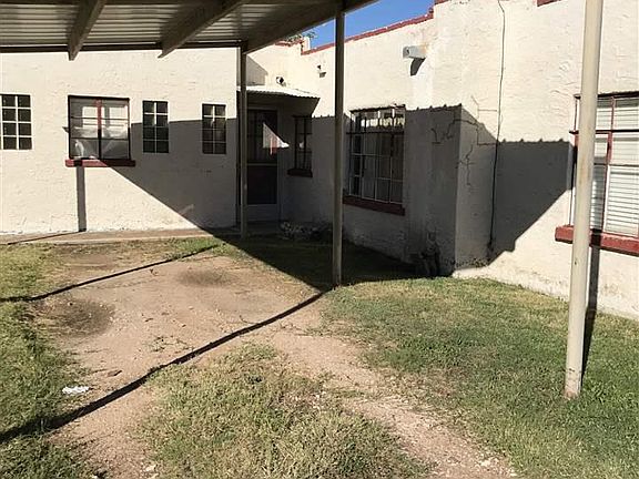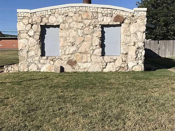 This is a tax exempt property so I don't know the date it was built. This property is to be sold as is where is. The house has a few updates: The paint in part of the house & the laminate in kitchen, hallway, & living room. The rest of the house needs work. The evaporative cooler is a down draft. It sits on the corner & has 2 lots included in the price. The little rock structure to the south of the house is being used as storage. It was at one time a residence. There is also a storage room to the west of the house. Includes a one car carport. This is a lot of property for the price! Both storage buildings will be emptied before closing. The roof on both structures was replaced in 2013 & both have a 20 year transferable manufacturer warranty.