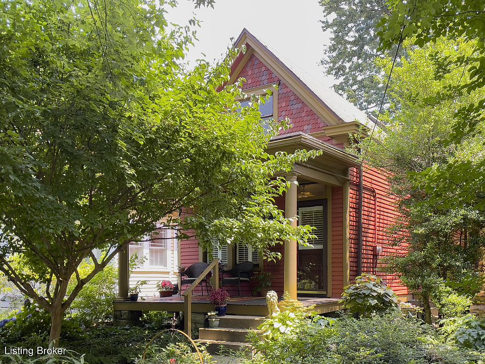 Welcome to 121 North Birchwood Ave in beautiful Crescent Hill! Wow! First time on the market in 25 years! This Charming Home will delight! The property has been lovingly cared for and remodeled and offers many wonderful updates and unique/interesting features. The home greets you with lush plantings/ trees and a relaxing front porch perfect for hanging out with neighbors and/or family. Upon entry, you'll notice the gorgeous heart pine floors and a period fireplace mantle. The home exudes serenity and is super cozy! Step into a truly fantastic chef's kitchen that features a gorgeous built-in armoire, red dragon granite countertops, custom cabinetry, stainless steel appliances (including a brand-new side-by-side refrigerator), gas