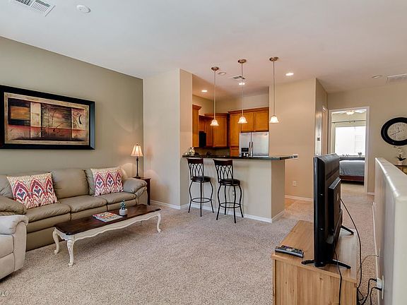 Welcome to an exquisite townhome nestled in the Resort Community of The Villas at San Marcos Commons in the heart of downtown Chandler! Meticulously maintained, you will be enchanted as you welcome yourself into the first-floor foyer with private guest ensuite, laundry and 2 car garage. Upstairs the kitchen is the center of the home both spacious and comfortable featuring all of the amenities of a chef's kitchen with Granite countertops, black appliances, glass smooth top stove, rich cabinetry, and tons of counter space. The kitchen opens up into the Dining and Great Room with a soaring ceiling and a balcony overlooking the community pool, perfect for the perfect al fresco dinner dates!