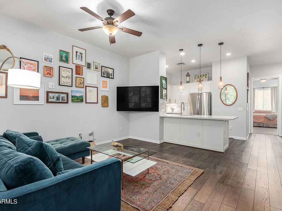 Located in the heart of Downtown Chandler on a quiet, tree-lined street, your updated home awaits. This bright and airy home features wood floors, new quartz counters, and updated hardware throughout. It boasts a newly remodeled kitchen with appliances installed in 2022 and brand new carpet in the bedrooms. One Primary Suite is upstairs, and another is downstairs, plus there's a powder room for guests. The large kitchen overlooks the dining and family room, perfect for today's open entertaining. You'll love the spacious 2-car garage with epoxy. Enjoy easy access to unique restaurants, farmers' market, golf, a comedy club, performing arts, a theater nearby.