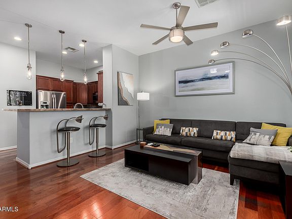 Trendy tile backsplashNatural lightCommunity pool and spaWalk-in closetGranite countertopsStainless steel appliancesWood-look floors