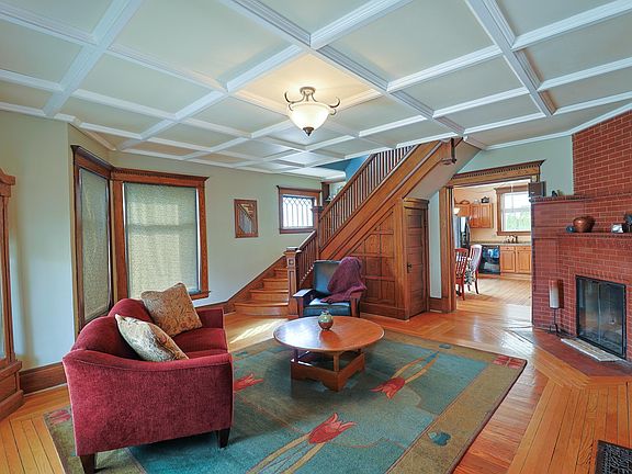 Welcome to this charming, updated home on a corner lot within city limits where timeless craftsmanship meets modern comfort. Welcome to this beautifully maintained and thoughtfully updated home, ideally situated on a spacious corner lot within the city limits—offering all the convenience of in-town living along with standout curb appeal. From the moment you step inside, you’ll appreciate the rich woodwork and gleaming hardwood floors that reflect timeless craftsmanship. The main floor offers a comfortable bedroom and full bath—perfect for guests, a home office, or convenient main-level living. Upstairs, you'll find three nice sized bedrooms, each with generous walk-in closets, and the unique layout features two stairways, adding charm and functionality. The heart of the home is the updated kitchen, featuring abundant space and a brand-new range/oven installed in 2025—ideal for everyday cooking or entertaining. Cozy up in the inviting living area with a newly installed fireplace, or enjoy quiet mornings and evenings in your private outdoor courtyard. This property also boasts exceptional garage space, with an attached 2-car garage plus a second detached 2-car garage, offering plenty of room for vehicles, hobbies, or storage. Important updates include a newer water heater, a tuck-pointed and resealed foundation, and a new main waterline installed in 2021, providing peace of mind for years to come. With its combination of character, updates, space, and a prime corner lot location, this home is truly a rare find.