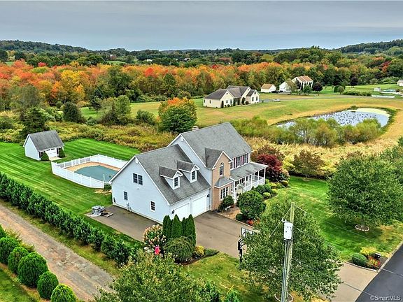 Located on a gorgeous landscaped lot, this magnificent Colonial with in-law set up has been lovingly & meticulously maintained by its original owner. Loaded with curb appeal, this custom built sun filled home features a welcoming wrap around rocking chair front porch. The main level features a two story dramatic entry foyer, formal living room, large formal dining room, beautiful large kitchen with breakfast nook, huge family room with fireplace/pellet stove insert, laundry room, half bath and office (can be 5th bedroom). The second level offers a master bedroom suite featuring a huge gorgeous bathroom with walk-in shower & whirlpool tub, double closet plus an additional large walk-in closet, two additional bedrooms, full hall bath and expansive dormered great room with second stair well to the first floor. The walk out basement features a fabulous in-law/au pair/nanny set up with fully equipped kitchen, living room, bedroom, full bath and large storage/mechanical room. Multiple zone heat and central vacuum. The large deck overlooks the picturesque rear yard and fenced in-ground pool with oversized shed. Set in a country quiet location with beautiful views yet so close to everything including North Haven's abundant shopping & restaurant opportunities, Downtown New Haven, the Quinnipiac University North Haven campus, Yale University, hospitals & train station. This home has all the bells & whistles and has been impeccably maintained inside & out. It's a must see!