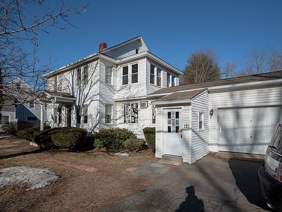 Great opportunity for attached business or in-law apartment. Home currently has attached daycare with separate entrance. The Colonial's first floor has a living room with fireplace, dining room, eat-in kitchen with pantry, sun room with electric fireplace and lav. Second floor has 3 bedrooms, full bath and expandable walk up attic. The daycare could be a great attached business or in-law apartment. It has separate entrance to sitting room, kitchen, lav which could be made into a full bath, and 2 offices which could be bedrooms. All has a large fenced yard. NEWER: WINDOWS, HATCHWAY AND ROOF 2015. Main house is gas heat and office space/day care is separate electric heat 5 zone.