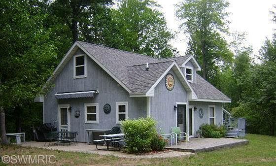 INCREDIBLE 565 FEET OF PRIVATE LONG LAKE FRONTAGE - Spectacular wild-life setting on this 136 Acre all-sports lake with 4.73 nicely wooded acres with Weldon Creek flowing through it; abuts to the Manistee National Forrest. A cottage to enjoy year round or just for the weekend. This cozy 2 bedroom cottage offers an open floor plan and a large upstairs offering extra space for rec room/sleeping quarters or storage. This property has easy-care laminate flooring with carpet in the bedrooms, large 1,200 gal. septic tank & 600 sq. ft. drain field, 4 inch well, and 200 amp electric service. The yard is low-maintenance, sloping down to the water's edge with a dock. FUTURE USE - this property has the option of an additional walk-out building site with water and septic in place -- cottage can be converted into a garage/workshop area. A MUST SEE!