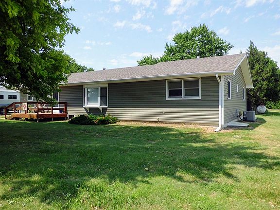 Low maintenance, move-in ready home in Ransom, Kansas! This over-sized rancher is perfect for anyone wanting to live on one level, or those looking for more room to grow. Over 2700 square feet of finished living space with additional storage basement storage! The master bedroom is complete with bath and walk-in closet. An adjacent bedroom connects and can be used as a sitting room or office. Off the large eat-in kitchen is a bay-windowed utility/breakfast room opening to a deck overlooking the backyard. A partial basement has full egress in both the family room and bedroom. Outside, the home is clad in vinyl siding and offers a perfectly clear view to the north. An extra large attached double garage and storage shed complete this pretty picture.