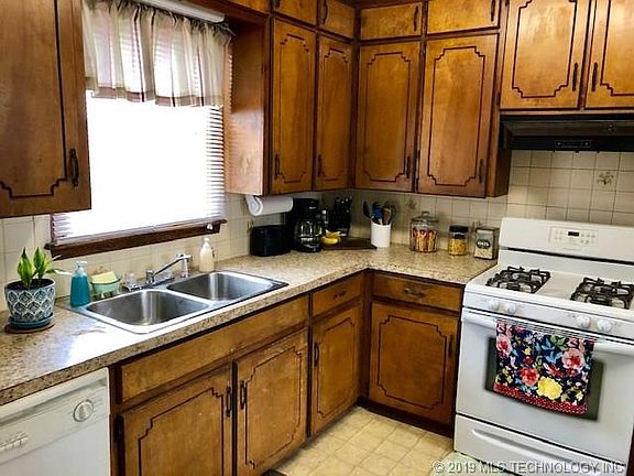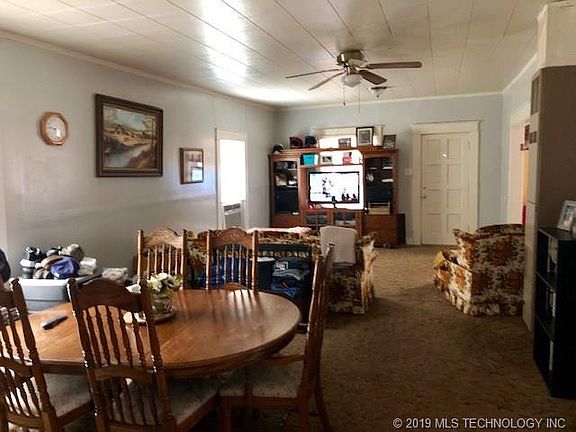 Investor delight! Home sits on two lots, includes a large detached garage/workshop with power. Large overhead door w/work area and storage. Great potential rental property w/appealing views of downtown Bartlesville! Sold AS IS. Some new electrical wiring.