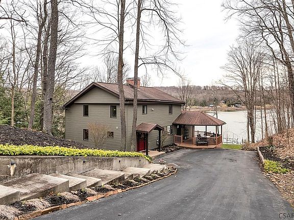 Just steps from the water on a phenomenal lot this lakefront home awaits you! Quality finishes throughout include a custom kitchen w/ spacious island, granite counters, upscale appliances open to the dining and great room areas. Lakeside wall of windows showcases the wonderful lake views from the great room featuring a vaulted ceiling & fireplace. Conveniently located on the main floor is one of two master suites w/ private bath and a half bath. 2nd. master suite located on the upper level with two additional bedrooms & full bath. Newly completed bonus room on the lower level perfect for 5th. bedroom/family room w/ full bath. Outdoor enjoyment is paramount with attached dining gazebo w/ cable hookup, wrap decking. Lakeside decking and dock.