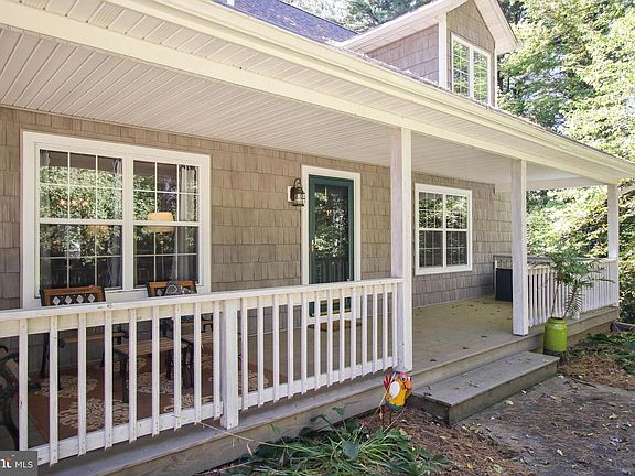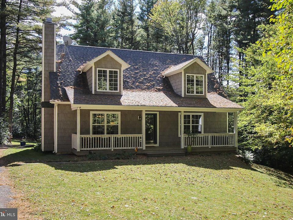 Get Away From it All! Charming cape cod situated on over 5 acres surrounded by nature and tranquility with 3 finished levels of beautiful living space. Inside offers an open floor plan on the main level highlighted by the stunning stone fireplace in the living room, soaring ceilings, eat-in kitchen with loads of cabinetry, 2 spacious bedrooms - one with access to back porch, laundry, full bath & gorgeous views from every window. Upstairs features a spacious loft with pellet stove, dramatic overlook to main level and a wonderful bedroom suite with reading alcove, walk-in closet & spacious bath with double sinks, jetted tub & separate shower. Basement is finished with walkout, full bath and plenty of rooms - just right for guests, an office, craft room and storage. Outside is the perfect place to relax with both front and back porches plus lots of open yard - great space for gardens, entertaining & play. Parking is easy with room for at least 10 cars! Seller has made many updates in the past few years including roof, siding, HWH, HVAC, washer/dryer, solar panels & more! If you're looking for something special - this is it!