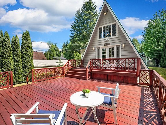 Delightful remodeled & expanded A-Frame in the Cherokee Beach waterfront community w/ private beach park. Home has large 2016 built 2-car, finished garage featuring huge 9-ft tall door, 220v circuits available for shop use or EV charging & RV/boat parking alongside. Home has modern kitchen w/ quartz countertops, stainless appliances, pantry, hardwood floor & hickory cabs. 1 bedroom up & 1 down. Huge entertaining deck leads to large, sunny, level lot w/ fire pit. Cozy full-time home or fantastic vacation home. Location provides excellent recreational opportunities steps away at private neighborhood park w/covered picnic shelter & beach. Boat ramp next door at Belfair State Park. 5 minutes to downtown Belfair, 25 minutes to port Orchard.