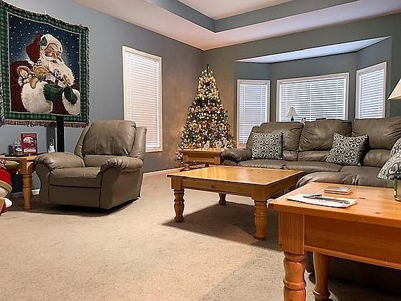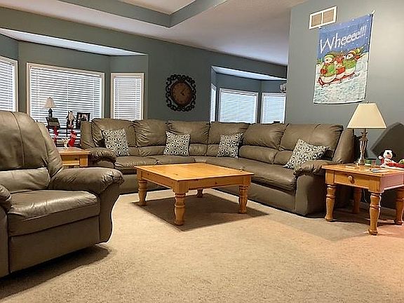 Custom built 3 bed 3 bath home on 28 acres m/l. Main level master suite. Custom wood cabinetry in kitchen, formal dining room, spacious living room. Ambient light w/ bay windows in living room and master. Master has his and hers walk-in closets, spa like master bath w/ jetted tub. Covered front porch, concrete back patio with entry into kitchen and master suite, and lower level garage with mudroom, lower level concrete safe room. Family room/ rec room on lower level can be used as 4th bedroom.