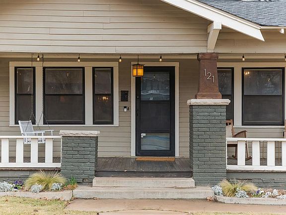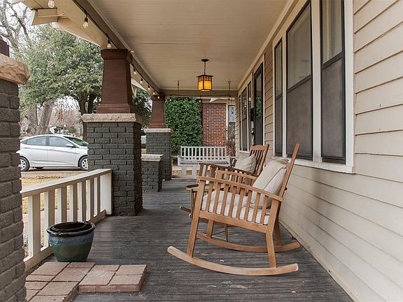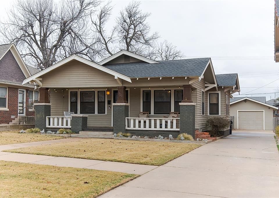 Welcome to this beautifully restored historic Craftsman bungalow, nestled in sought-after Heritage Hills! Enjoy your morning coffee or unwind in the evening on the covered front porch, the perfect spot to soak in the neighborhood’s charm. Step inside to an inviting living area featuring a mock fireplace and built-in bookcases that elegantly frame the windows. Large historic windows bathe the home in natural light, enhancing its warm and welcoming atmosphere. Designed for both comfort and efficiency, this home lives beautifully and functions effortlessly. Thoughtful designer touches throughout strike a perfect balance between historic charm and transitional style, particularly in the kitchen and bathroom. The generously appointed kitchen features quartz countertops, oversized subway tile, custom cabinetry with glass-front details flanking the gas range, a stainless steel appliance package (including a new dishwasher in 2023), custom wood shelving, and a charming breakfast nook. Storage is impressively maximized—a rarity for a home of this size. The third bedroom currently functions as an office with open shelving and a dedicated closet but could easily serve as a second living area. Enjoy Oklahoma’s outdoor seasons in the beautifully landscaped backyard, complete with a new flagstone patio and sprinkler system. Located near the shopping and dining of historic 23rd Street, just blocks from sought-after Wilson Elementary, and minutes from major highways, this home offers both charm and convenience in one of the city’s most beloved neighborhoods.