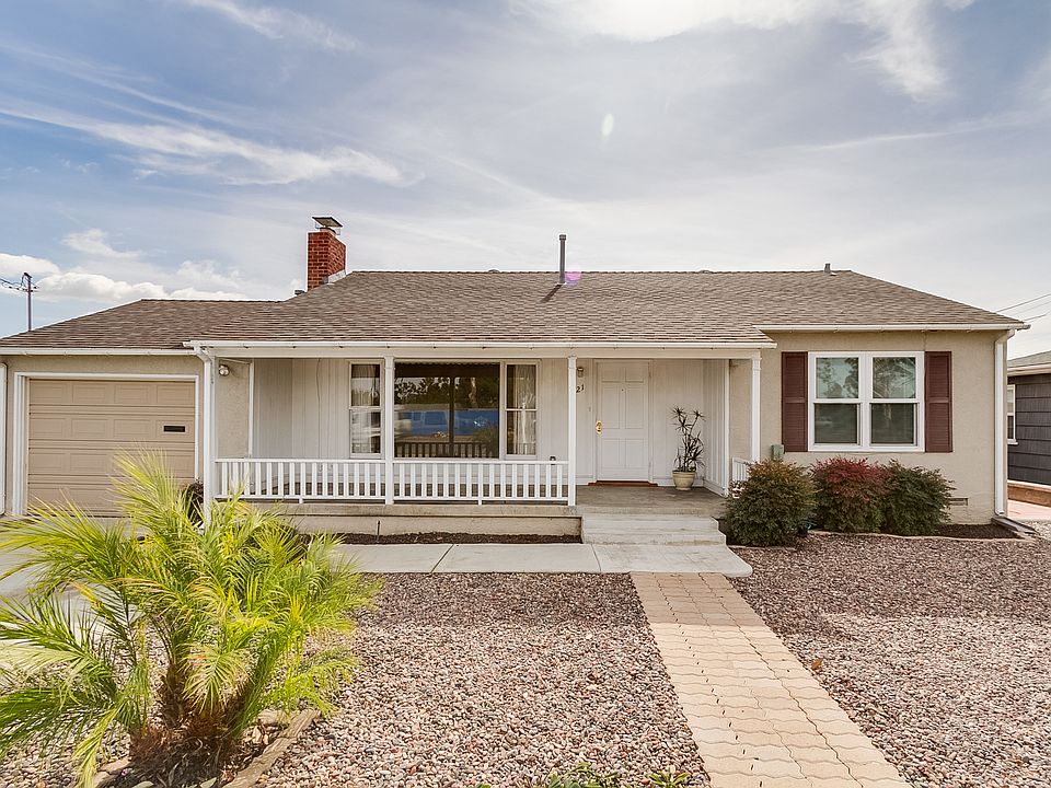 Save thousands when using a REX agent. Click to schedule a showing! Charming 2 bedroom, 1 Bath, 1,066 sqft home in Chula Vista. This single family home boasts beautiful solid hardwood oak flooring and new plumbing throughout the entire property. This home features fresh paint, a new roof, new electrical sockets, switches, wiring and panel box. Highly efficient windows. Kitchen with tile counter tops and laminate flooring. Cozy wood burning fireplace in the living room. Low maintenance front and back yard with fruitful orange and lemon trees. One car garage with a space efficient stack-able washer and dryer as well as built-in cabinets. Extra parking on the driveway and additional backyard shed for storage. This home is conveniently located near multiple schools and shopping areas. Click to schedule a showing now! Same day showings available.