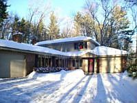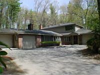 RARE FIND - ONE LEVEL LIVING WITH 3 CAR GARAGE ON 1 ACRE. This updated, 4 bedroom, Open Concept, Contemporary Ranch with Bungalow Flair is nestled in a wooded setting and trimmed with stone walls that gives you the feeling you are escaping to YOUR OWN RETREAT, while being just minutes from the schools, tennis courts, pool and every convenience. This is a HOME FOR ALL HOLIDAYS. Gleaming hardwood greets you as you enter the foyer leading you to the spacious dining and living room with wood burning stove and fireplaced family room with dining area. Yes, everyone will gather in this kitchen. Of course a subzero refrigerator, granite, garland commercial 4-burner gas range with griddle, JenAire wall oven & microwave. Walls of windows offer views of nature, grilling patio and fire pit patio. The Master Suite with private patio & 2 bedrooms are on the main level. Another Suite with Office/Den and laundry room on 2nd level. Has In law potential and is wired for a generator. NEW Greenhouse!