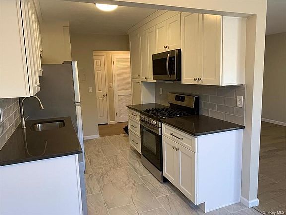 Better hurry to see this JUST BEAUTIFULLY COMPLETELY RENOVATED, PET FRIENDLY, sun drenched, upper spacious condo (no one above you) in a courtyard setting w everything you're looking for! You're going to love the pretty BRAND NEW KITCHEN w white cabinets, quartz counters, stainless steel appliances, ceramic tile blacksplash & floor with a dining area which opens to a large living room w sliders to a large deck overlooking a lawn area. Huge master bedroom w 2 double closets & a small walk in closet, brand new tile bath w a quartz top vanity, wood floors, & a W/D IN UNIT. Brand new furnace, H2O heater & central air. Newer windows. Assigned parking space close to front door plus plenty of guest parking, LOW TAXES ($3,432.50 after basic star disc) & com charges ($322) So close to everything - NYC trans - bus & train, NYS Thruway, PIP GSP, TZ bridge, park & and lots of shopping. You'll enjoy the pool, playground, dog walking area & video intercom system. STORAGE ROOM. Don't wait!