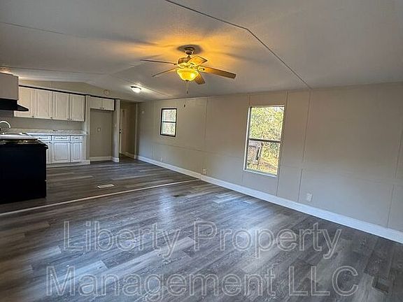 This 3-bedroom, 2-bath single-wide sits on a wooded lot that offers privacy with no neighbors directly behind you. The home has LVP throughout and has been updated with fresh interior paint giving the space a clean and comfortable feel. The kitchen features white cabinets and opens to the living room, creating a functional layout for everyday living.