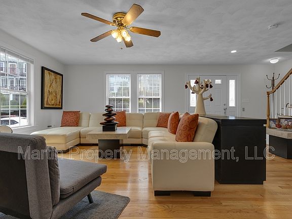 December 1 -This sun-filled, 4-level townhouse offers the perfect combination of comfort and convenience in Brighton, right near the Newton line. With easy access to the Mass Pike, bus lines, and restaurants and shops of Oak Square, this rental property is ideal for those seeking both a peaceful retreat and city accessibility. The first floor features a spacious living room with a cozy gas fireplace and a half bath. The dining area is adorned with elegant chair rails, wainscoting, and glass sliders that lead out to a private deck. The kitchen is equipped with granite countertops, a tiled backsplash, and stylish white shaker cabinets. Upstairs, you'll find two well-sized bedrooms and a full bath. The top floor boasts a private master suite. Additionally, the finished basement is complete with laundry facilities, garage access, and a walk-out option. This home also features central air, gleaming hardwood floors, and ample closet space. HVAC system updated in 2019, 3 parking spaces.