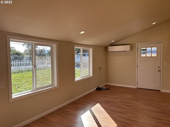 Darling nicely updated three bedroom, two bath home on over half an acre! Home has new interior and exterior paint, ductless heat pump, kitchen cabinets, fixtures, windows, doors, appliances, and large laundry room... so nice! City sewer, water and natural gas. Detached garage/shop is 24'x21' and perfect for projects, storage and parking a motorcycle or small car. Land is all usable, with fruit and shade trees, in ground sprinkler in front lawn. Lots of parking, including RV and plenty of room and access for a large shop.