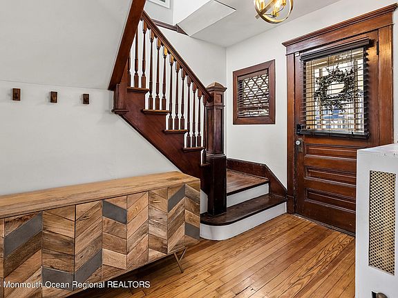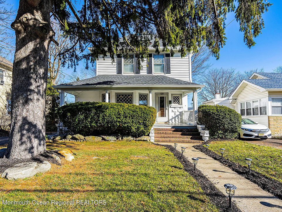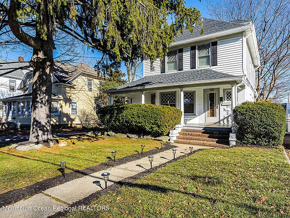 You'll find abundant charm & character in this beautiful colonial. The large front porch is the perfect place to relax. The entry foyer welcomes you with a graceful staircase & the hardwood flooring & decorative molding you'll find throughout the home. Open the pocket doors to the bright living & dining rooms with built-ins. Updated kitchen with slate floor, stainless appliances, & built-in booth. Updated full baths on both floors. Great natural light in the three upstairs bedrooms. Additional bonus space in the walk-up attic, perfect for office or playroom. Full basement & huge detached garage! Great space for outdoor entertaining on the large back deck in the deep, fenced yard. All this & only 1.5 miles to the beach! Convenient to premier restaurants & shopping, highways, & train.
