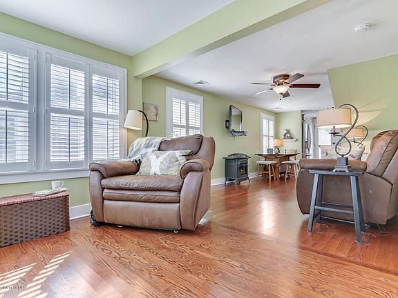 Must See! Meticulous, move-in ready FEMA compliant home with attention to detail and tons of upgrades. Main living area consists of two BR's,with Jack & Jill full bath, kitchen boasts custom cabinets with conv.pull out shelving. All new energy star rated stainless steel appliance package. This main level has all new warm-toned hardwood floors throughout flexible open living/dining room area. Upper level offers an expansive master suite with tiled bathroom,built-in office work area, ample closet space and extra storage area. Relax off of the new Trex deck off kitchen with automatic retractable awning and outdoor shower with changing area. Deck overlooks paver patio area complimented by an organic flower garden and new vinyl fencing. House has plenty of off-street parking for 5 cars,2