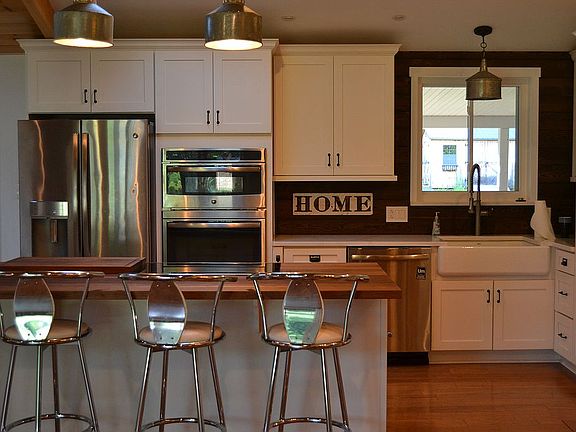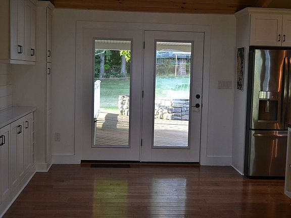 Remodeled multi-level on a Cul-De-Sac~full of natural light~vaulted ceiling, skylights, open concept floor plan, & a French door leading to the new deck that provides plenty of room for seating, eating and entertaining. The Stone fireplace and wood beams offers cozy feeling during the winter months. Open concept kitchen, living room and dining room allows for easy entertaining. REMODELED KITCHEN features white shaker style cabinets with soft closed pull out drawers, pantry with pull out drawers, spice drawer, quartz counters, stainless steel appliances, induction cooktop, farmhouse sink. The walnut butcher block island provides extra seating. REMODELED MASTER BATH has tile floor, shiplap & tile walls, glass enclosed shower. Patio features stone accent wall and fire pit seating on landscapes half acre, with an oversized shed- FAMILY ROOM on lower level. Master bedroom has a walk-in closet. 3 stage water filtration system &public sewage~Newer furnace and hot water tank