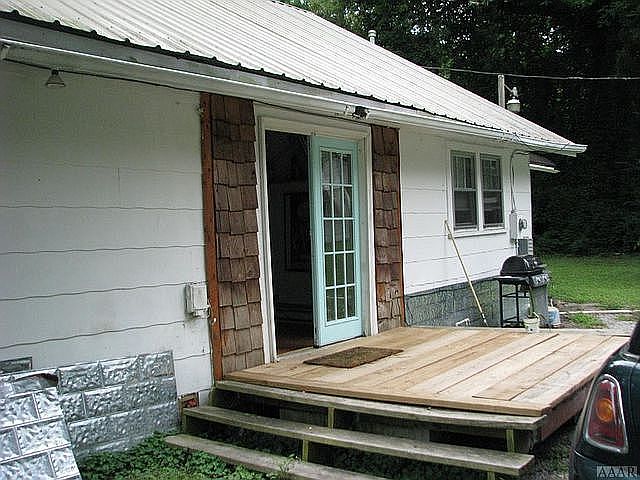 3 bedroom 1 bath home on 3.08 acres. Has good bones. Wood floors. Huge enclosed porch. Lots of closet space. Walk in attic for extra storage. Utility and mud room. Great location,walk to town. Short distance to Outer Banks beaches. Low property taxes. Does not require flood insurance.City sewer and water, no need to deal with well and septic!