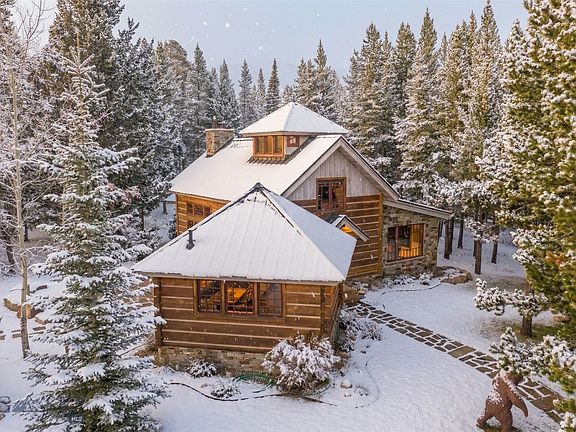 Between Bozeman and Yellowstone National Park, this extraordinary 20-acre property offers unmatched privacy and sweeping panoramic views, just ten minutes from both Big Sky Resort and Town Center. A sunlit meadow framed by mature spruce and aspen trees serves as the future main house site, capturing breathtaking vistas of Lone Mountain, the Spanish Peaks, the Yellowstone Club, and Buck Ridge. A 2,000-square-foot guest house crowns a landscaped knoll overlooking the meadow. Designed with mountain character and artisan craftsmanship, it features soaring ceilings, a dramatic stone fireplace, a hand-crimped copper roof by renowned metalworker Mike Winters, and a whimsical glass-floor cupola. Luxurious touches include radiant heat, Lutron lighting, a steam shower, and a full washer and dryer. Above the oversized two-car garage, the caretaker’s quarters offer additional guest accommodations with warm barnwood interiors, wide-plank Douglas fir floors, and a river rock shower with a cracked marble floor. The 20-acre grounds are beautifully manicured, with rolling lawns, rock gardens, and nearly a mile of private hiking and fitness trails. In winter, the coveted Boomerang Nordic trail—part of Lone Mountain Ranch’s nationally acclaimed network—winds discreetly through the property, offering direct access to world-class cross-country skiing. Amenities include a six-person hot tub, lantern-lit driveway, Starlink internet, ADT security with cameras, and an extensive irrigation system. This is a rare Big Sky legacy property, offering the perfect blend of privacy, luxury, and year-round recreation.