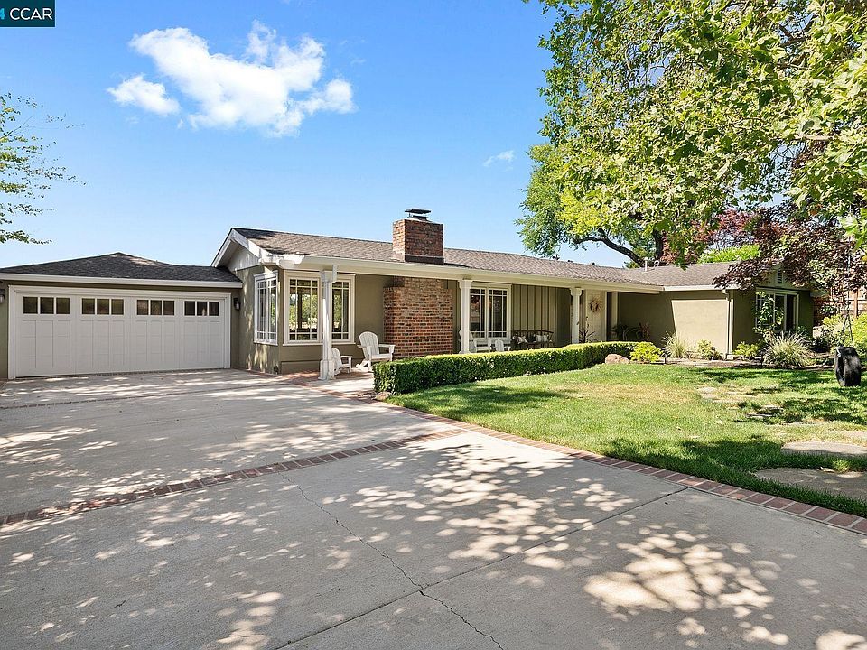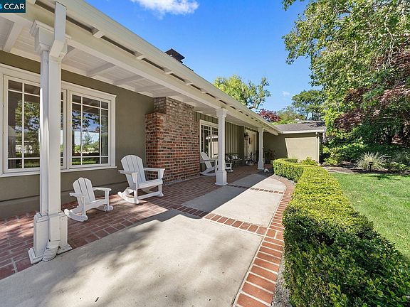 Less than five minutes to town, BART, and Glorietta School, this single-level home rests on an amazing .44-acre lot across the street from the neighborhood’s elite address: Catherine Court. Enter past a mature garden featuring a grass yard and maple trees. Inside, the home offers a thoughtful floor plan, light-filled living spaces, and glorious views of the valley below and hillsides above. The spacious living room sits under a vaulted beamed ceiling, with a wood-burning fireplace. The picture window and French doors invite you to the deck and grassy back yard beyond. The spacious family room (with another wood-burning fireplace) and updated kitchen (with a skylight, custom cabinets, stone countertops, and stainless-steel appliances) will be the center of home activity. The windows and glass doors there draw in the natural sunlight. Work or study from home is easy in the separate office space behind the garage, with privacy and more hillside views. The open back yard offers a large deck, meandering gravel pathways, a firepit, gardens, a gazebo, and a play area (with space to add a swimming pool if desired, and hook-ups to add a hot tub). The yard provides the perfect setting to take in and enjoy the best views of the Orinda hills and majestic evening sun.