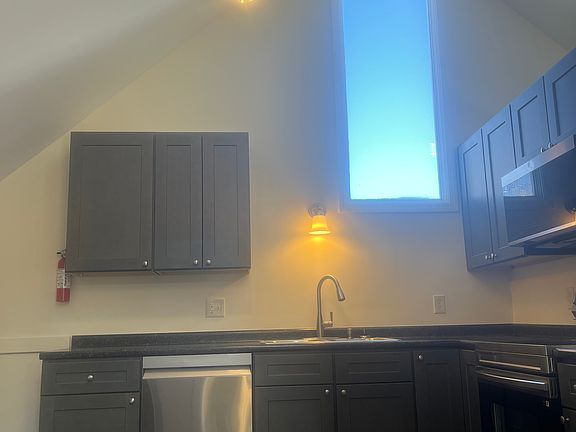 Newly renovated modern 1 bedroom apartment located on the second floor features stainless steel appliances, dishwasher large built in microwave, fridge with ice maker, 13'+ cathedral ceiling A beautiful yard with off-street parking and a convenient location, you'll have easy access to primary state roads I-91, and all that Springfield has to offer only a half-hour to either Okemo or Magic Mountain, and 45 minutes to Darthmouth-Hitchcock Medical Center. New gas furnace New flooring Paved parking Laundry Room in the building New wiring and plumbing with a 100amp service Apartment is not dog friendly. Tenant pays heat and electricity. Must pass a Background check, (no charge) and have positive references 1 year lease includes water/sewer, parking lot snow removal and sanding, mowing, trash/ recycling Tenant pays heat, electricity