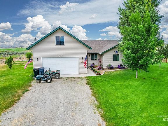 This serene 5 acre country retreat is a horse lover's dream! Situated on a quiet rural road, this property features expansive views in all directions. The home boasts an open living and kitchen concept, split bedrooms, main level master with ensuite, and an oversized upstairs bonus room. Enjoy outdoor dining on the west facing deck, surrounded by a landscaped lawn, irrigated pasture. Plenty of room for RV parking, atvs; or even a future shop, if desired! Out buildings include a shed and a loafing shed.Irrigation is supplied by the Big Wood Canal; property has 2 water shares. Easy access to highway 75 for a quick commute to Twin Falls or Sun Valley.
