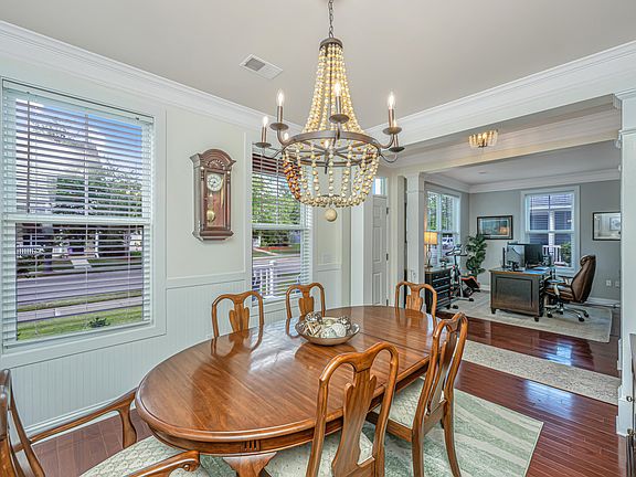 Welcome to 121 Pavilion Street located in well appointed Reminisce community. This 4 bedroom, 2.5 bath home is beautifully designed inside and out. As you cross the bright and sunny front porch, you will be welcomed by the spacious and inviting foyer. You will immediately appreciate the gorgeous hardwood floors, crown molding, and designer touches. A perfectly appointed office is at the front of the home for additional privacy. Across the way is the formal dining room perfect for informal or formal gatherings. A walk through butler's pantry makes for the perfect coffee station or wine bar. The open kitchen has newer, gorgeous granite countertops, tile backsplash and stainless steel appliances, 42'' upper cabinets and an breakfast nook. The family room is spacious and open. The lower level also has access to a screened in porch, a coat closet and a half bath. As you walk up to the second floor, you will appreciate the built-ins and storage found on the stairway's landing. Continuing up the steps, you will be impressed by the primary suite with ensuite bath and large walk-in closet. Two additional bedrooms, full bath, linen closet and laundry room finish off the second floor. The third level can be used is so many ways. As large fourth bedroom, playroom, additional office space or work out room. The possibilities are endless. Enjoy the beautiful Charleston weather from your screened porch, second floor balcony, or fenced-in yard. Ample closet space is found throughout the home with a large under-stairs closet, walk-in closets, linen closet, a walk-in attic, and attic space over the two-car garage. Upgrades include: HVAC was replaced in 2020 and features Nest thermostats for maximum efficiency. New refrigerator 1/2024. New dishwasher 5/2024. Custom blinds. Designer lighting. And More. Reminisce features a community pool, two play parks, a clubhouse and RV/Boat storage. A $1,500 Lender Credit is available and will be applied towards the buyer's closing costs and pre-paids if the buyer chooses to use the seller's preferred lender. This credit is in addition to any negotiated seller concessions.