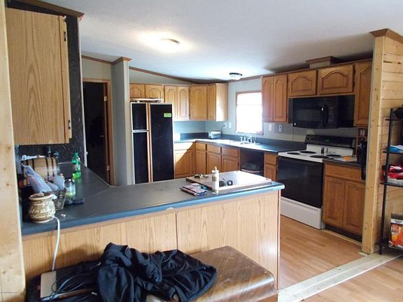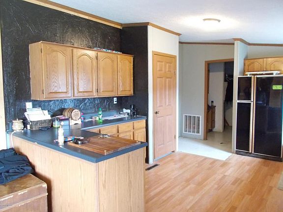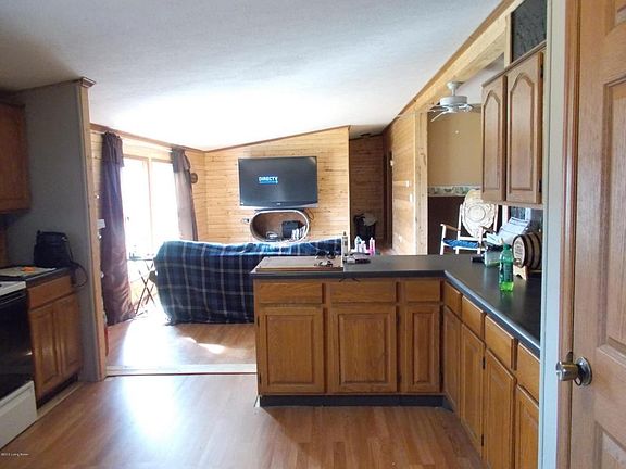 This manufactured home offers 4 bedrooms, 2.5 baths, Kitchen, Dining Room, Living Room with wood burning fireplace, Family Room, and a Laundry room. It has a covered front porch, a large deck in the back with a chain link fence that enclosed the back yard and overlooks the neighbors lake. The home has a 2 car detached open face garage and a concrete drive and parking. Located near I-71. New roof in 2010, the windows in the Family room and back bedroom have been replace, water heater was replaced with an 80 gallon tank.