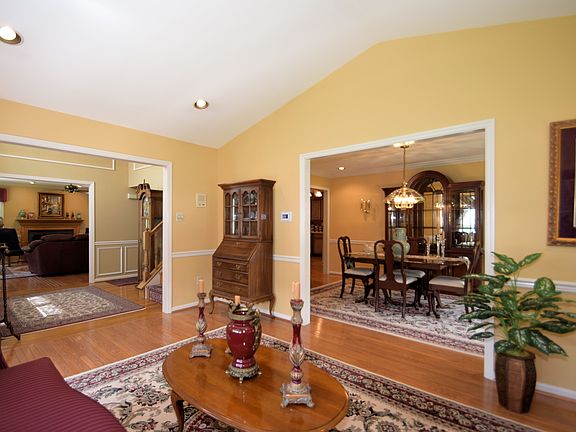 This beautiful upgraded town home situated on the golf course is nestled behind the 6th green and provides great long distance views! You are greeted in the foyer with hardwood floors and crown molding. To the left of the foyer is the large living room and dining room each featuring refinished hardwood floors, crown molding, chair rail and shadow boxing. The other side of the first level features a gorgeous remodeled kitchen with synthetic quartz counters, raised panel cabinets, ceramic tile back splash, recessed lighting and a ceiling fan. Behind the kitchen is the updated family room with cathedral ceiling/skylights, gas fireplace, golf course views and a sliding glass door to the deck. The back yard features a Trex deck with retractable awning, paver patio and INCREDIBLE long distance scenic views. The second floor is highlighted by a large main bedroom with hardwood floors, 3 closets with organizers (1 is a walk in), chair rail, crown molding and ceiling fan. The main bedroom suite is completed with a generous remodeled main bathroom featuring ceramic tile floor and surrounds, large ceramic tile shower, and skylight. The second floor also features 2 other bedrooms with hardwood floors, ceiling fans, crown molding, chair rail, shadow boxing and large closets. You will also find a ceramic tile hall bath with crown molding and a convenient second floor laundry. On the lower level is the large finished basement with a full ceramic tile bath and plenty of space left for a workshop and/or storage. Other upgrades include wood blinds throughout most of the home, newer roof (2012), all newer Anderson replacement windows, newer HVAC (2009), newer hot water heater (2016) and a whole house water filter system. The convenient 2 car attached garage completes this great home!
