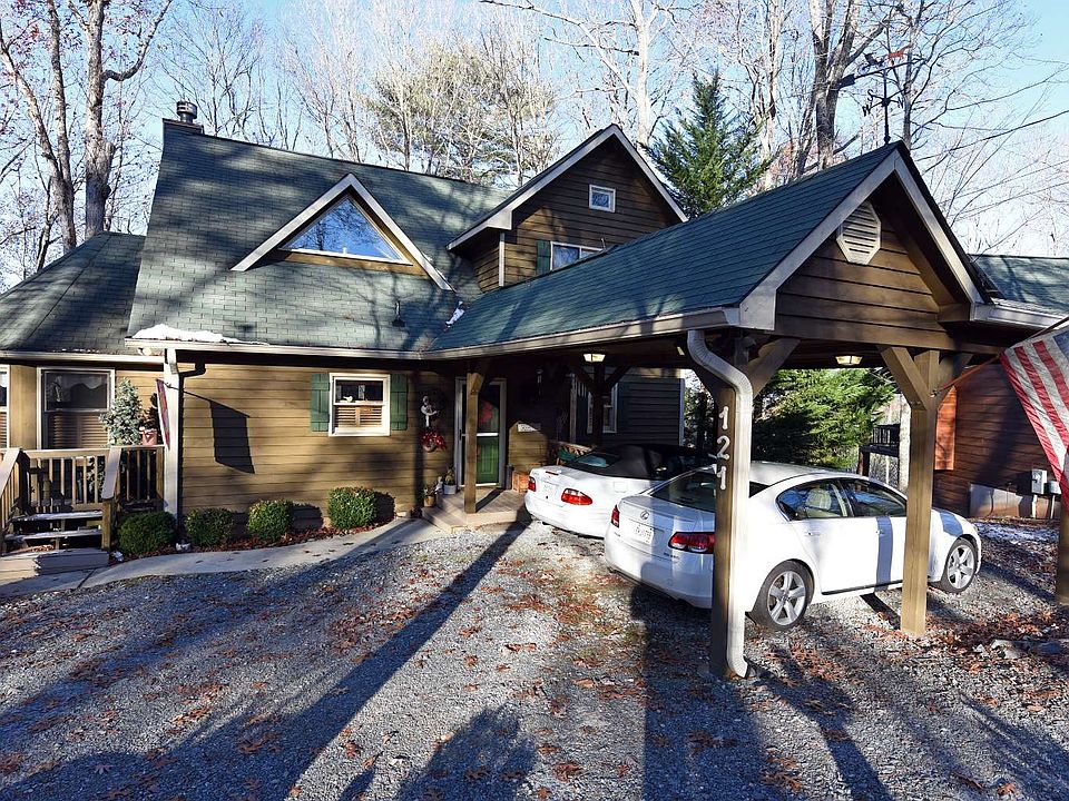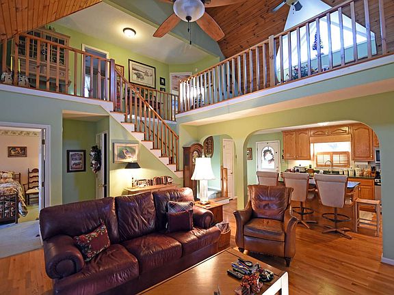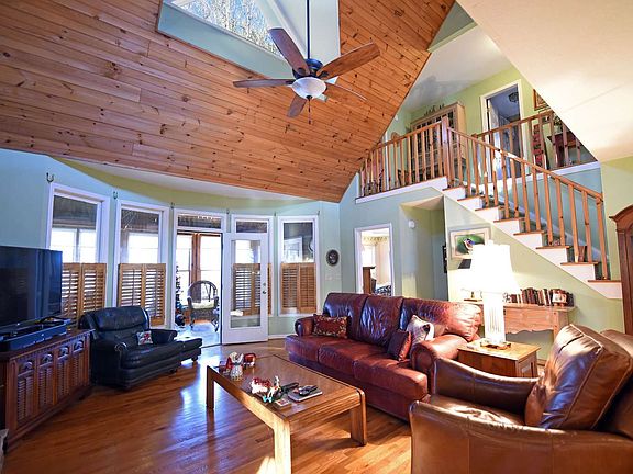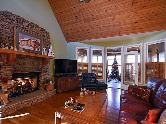 Easy living in this traditional style cabin, located on a quiet street in Walnut Mountain. Nice view looking over green space. Home is a mix of mountain rustic and traditional. Great room has a beautiful stone fireplace; and connects to a relaxing sunroom with wall of windows. Roomy country kitchen with breakfast bar and unique separate dining room. There are 4 bedrooms and 2 full baths, 2 half baths. Terrace level has a multi-purpose room & bath (4th bedroom/playroom/den). Drive under garage, shop, 2 car portico and circular drive. Home is convenient to shopping and the quaint Ellijay and Blue Ridge downtowns. Gated with pool, tennis, clubhouse, 4 fishing lakes and a trout stream. Two State parks nearby plus thousands of acres of US National Forest to explore. Easy one hour drive from North Atlanta. Owner has prepaid home warranty. Propane generator included.
