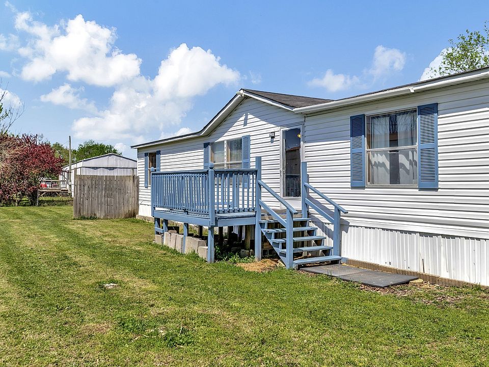 No HOA! Doublewide well cared for home in La Vergne! This inviting 3 bedrooms, 2 baths boosts with Laminate flooring in living and dining room, ceramic tile in bathrooms, kitchen, laundry and carpet in the bedrooms. Come with living room sofas, dining table set, Primary bedroom set, all kitchen appliances including Refrigerator, washer, dryer and storage shed. Open concept with tall ceiling in the master bedroom. Home has been Detitled. Selling As IS.