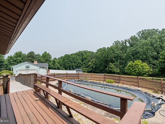 Welcome to this charming home on over an acre located in the water-oriented community of Woodcrest Shores. Enjoy the convenience of having a community area with water access and a marina and restaurant right down the street. With some updating, this home offers so much potential. Open layout that features a spacious eat-in kitchen with ample cabinet space, vaulted ceilings with wood beams and sky lights that offer lots of natural light. Kitchen opens to the family room with large windows and a pellet stove. Three bedrooms and two full baths including a private bath in owners suite all on the main level. Finished lower level with a large rec room, two bonus rooms and laundry/storage area. Deck overlooks secluded rear yard with in-ground pool with wooded views. Septic, water heater and HVAC have been updated within the last few years. Large garage and shed offer plenty of storage for all of your summer toys. This is your chance to buy a beautiful home for a great price that you update over time and make your own.
