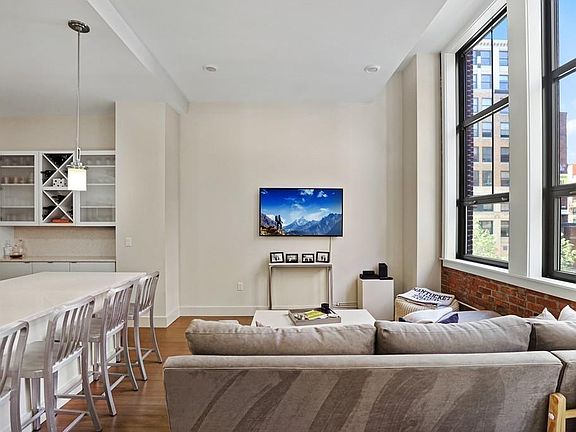 Find this awesome 2 bedroom, 2 bathroom condo in the highly desirable Forecaster 121 building. This unit features soaring ceilings, exposed brick walls, and an open kitchen and living area that is filled with light from the massive windows. Hardwood floors run throughout, including both bedrooms along with central air conditioning, washer/dryer, and Bosh appliances. There have been several custom updates to this unit which include automatic window shades on both skylights and bedroom windows, custom California closets in both bedrooms and glass shower doors in each bathroom. This ideal downtown Boston location puts you at the intersection of the North End, Beacon Hill, and Faneuil Hall and only steps from the ever evolving TD Garden. Amenities include a fitness studio, 24/7 concierge, and an elevator.