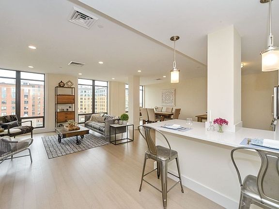 AMAZING 9th floor NEW CONSTRUCTION residence at the Forecaster 121! This beautiful 2 bed ; 2 bath home features high ceilings, floor-to-ceiling windows, Plyboo flooring, central air, in-unit laundry & wonderful Boston Harbor views. Master bedroom offers a large, custom-designed walk-in closet & spa-like en suite bath with double vanity & glass shower enclosure. Open concept living, dining & kitchen area showcases custom, high gloss white lacquer cabinets, quartz countertops, Bosch SS appliances, gas cooking, & breakfast bar with seating for 3. Boutique building amenities include: modern, immaculate lobby & common areas, 24-hour concierge, valet parking, fitness studio, secure bike storage, clubroom for business or social gatherings & elevator. Centrally located in the Bulfinch Triangle Historic District; just steps from TD Garden, MGH, Government Center, the North End, Waterfront, West End & Beacon Hill. Convenient to North Station, Haymarket MBTA, Commuter Rail & Amtrak stations.